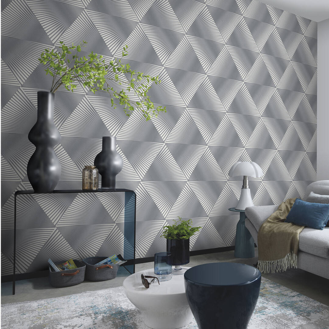 Тапет винил флис Спотлайт 2 3D геометрия сиво